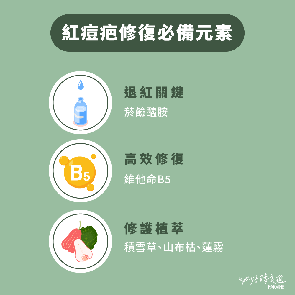 如果你的痘印還紅紅的,建議使用 含菸鹼醯胺+B5+植萃的修復精華。