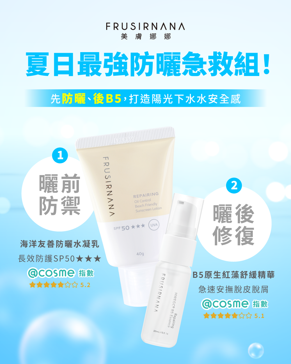 一瓶友善海洋防曬+一瓶B5紅藻舒緩精華,1+1搞定夏日保養