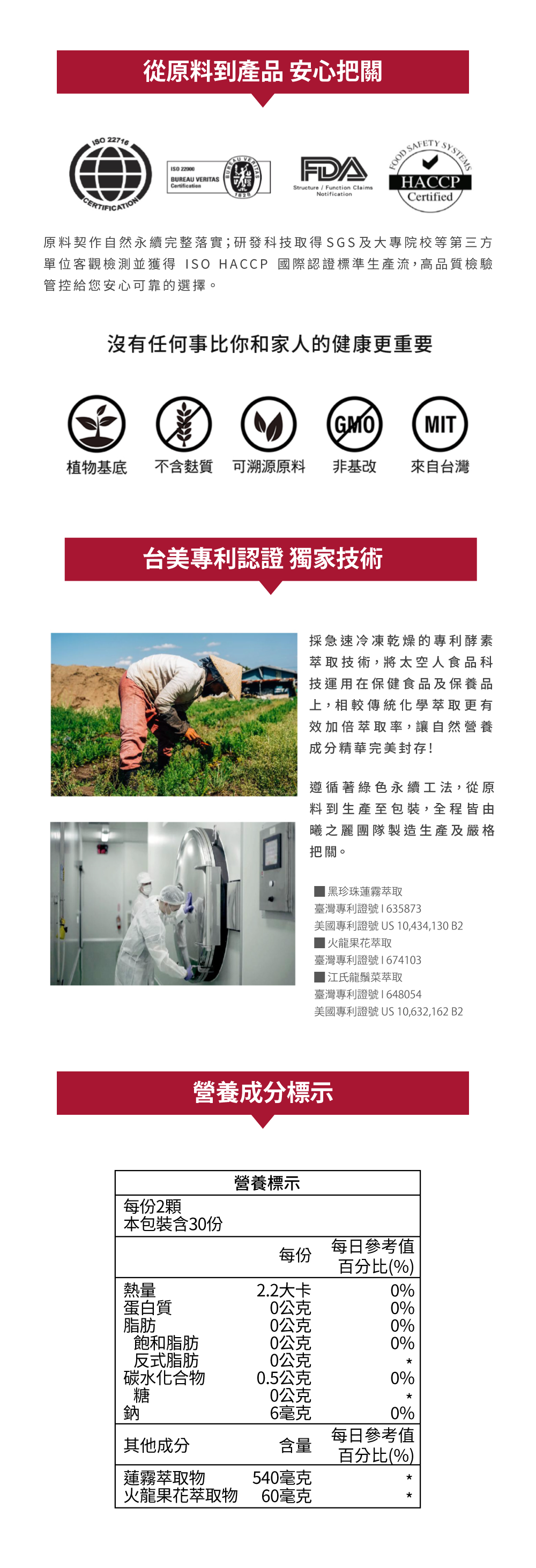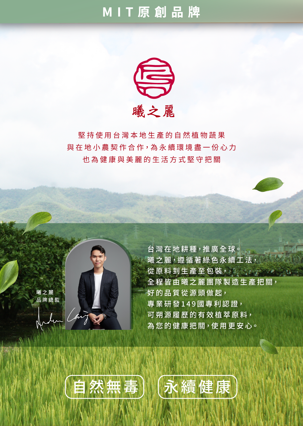 曦之麗採用臺灣、美國、歐盟等,多國發明專利冷凍萃取技術,加倍還原天然營養成分精華,醫食同源,天然為本的概念,讓保養由內而外,健康美麗全面升級!