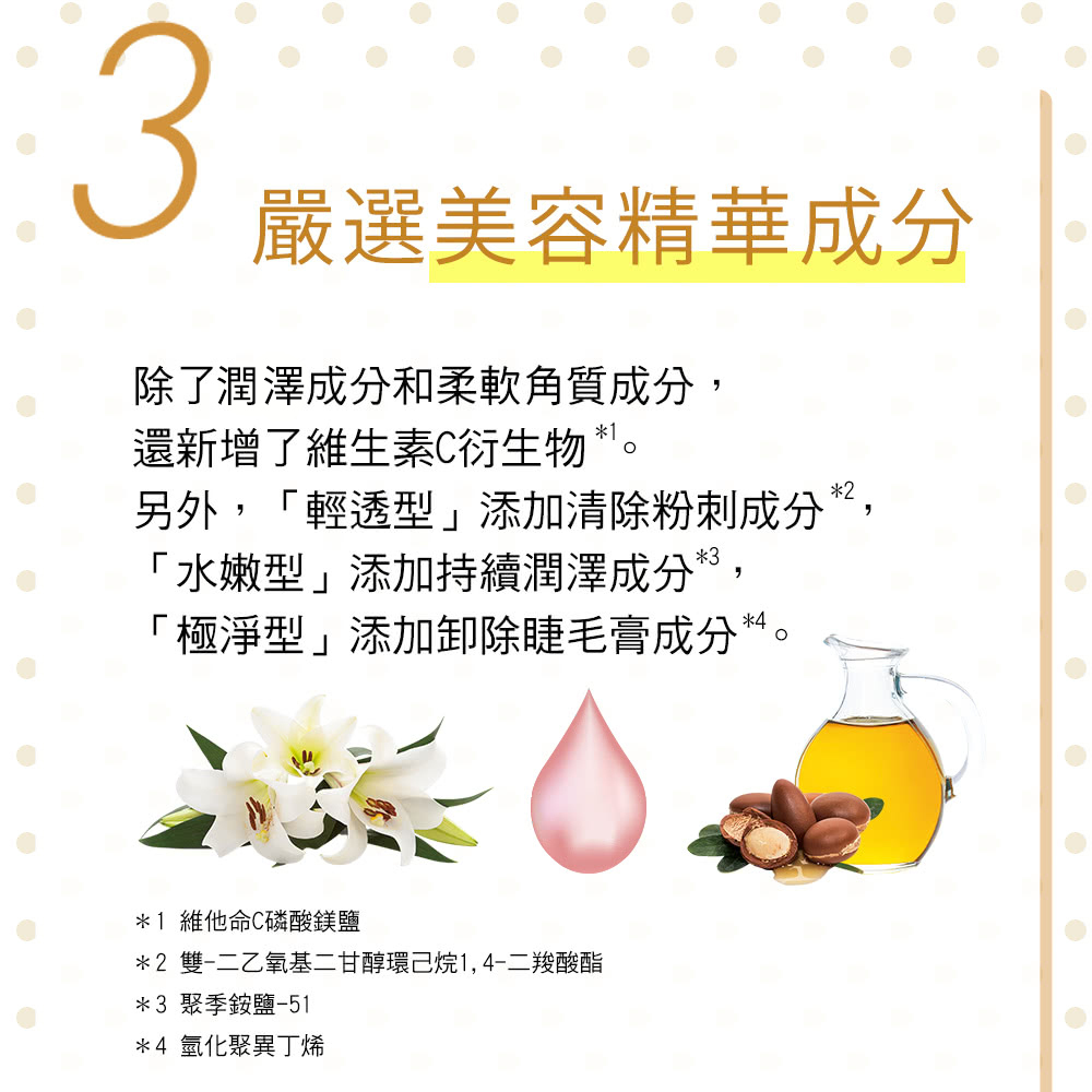 ✔潤澤型配方:鎖水效果更顯著。