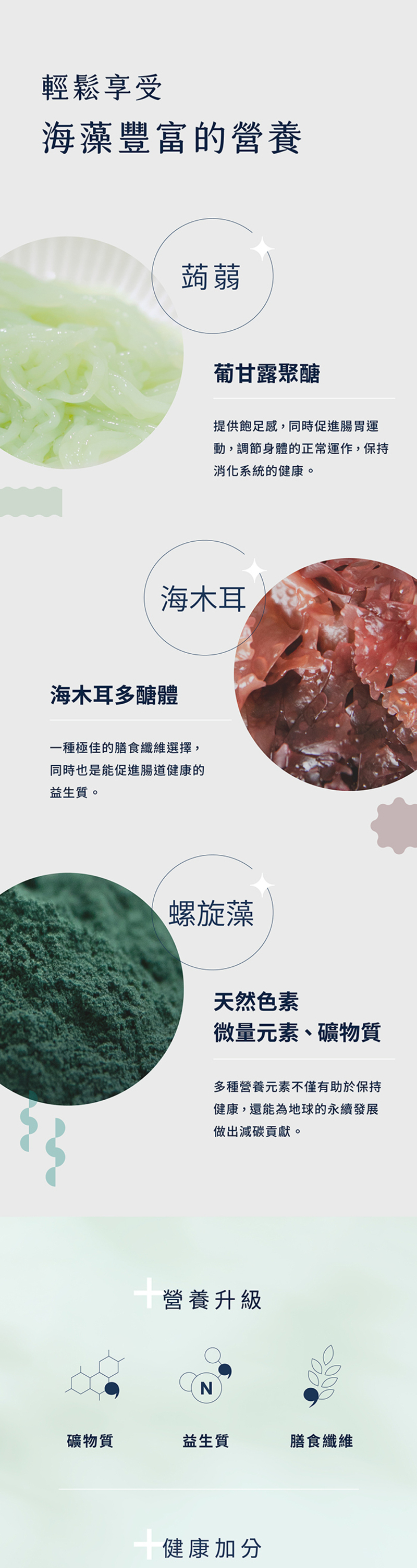 ◆額外添加【海木耳多醣體與螺旋藻萃取】,提供多元膳食纖維來源,有助促進腸道蠕動與增加飽足感,低熱量也能輕鬆滿足食慾
