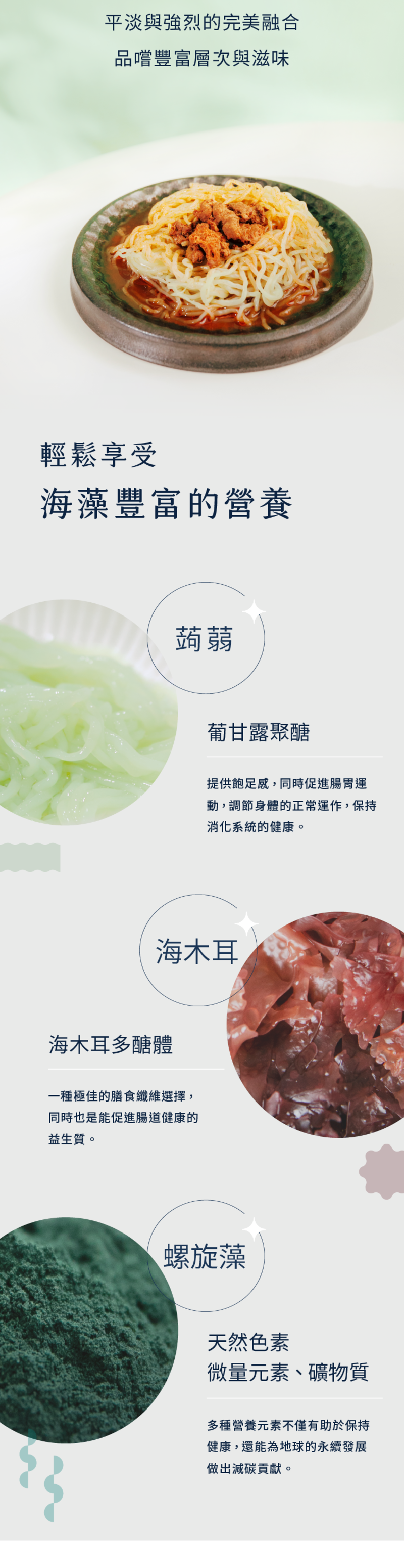 ◆麵體Q彈有嚼勁,額外添加海藻萃取,增添藻香味,熱水沖泡時間不影響麵體嚼勁,不必擔心麵體煮過頭,也能擁有完美口感。