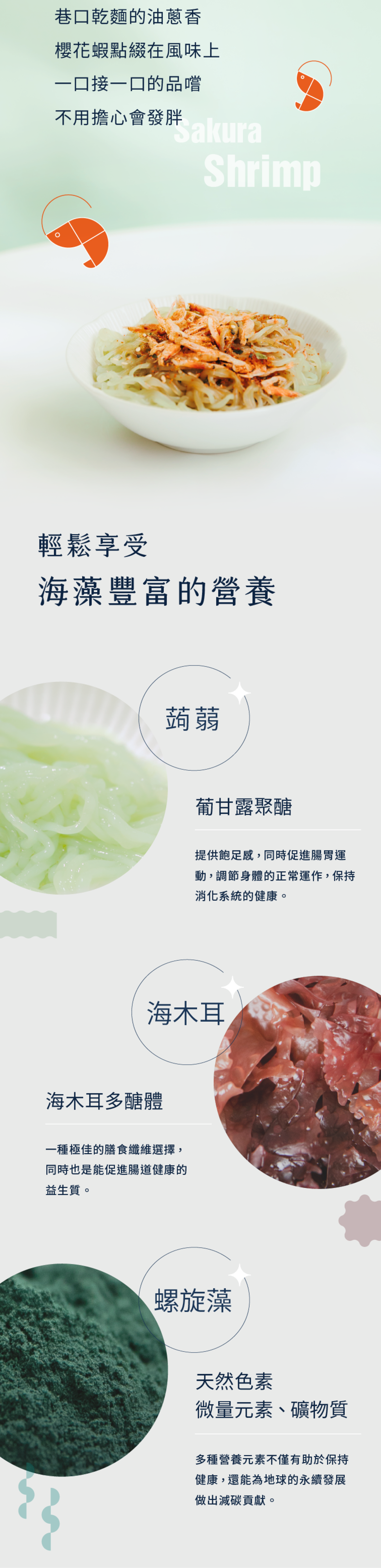 ◆麵體Q彈有嚼勁,額外添加海藻萃取,增添藻香味,熱水沖泡時間不影響麵體嚼勁,不必擔心麵體煮過頭,也能擁有完美口感。